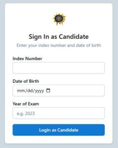 Students are to use the “Sign in as candidate” while schools will use the “Sign In as School” Login option.  The released 2025 BECE results malpractices website is likely to delay the release of the result.